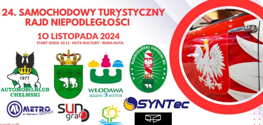 Chcesz aktywnie i atrakcyjnie uczcić ważne dla Polaków święto, a przy okazji dobrze się pobawić i zwiedzić ciekawe obiekty? Jeśli tak, to weź udział w 24. Turystycznym Samochodowym Rajdzie Niepodległości, na który zaprasza Automobilklub Chełmski. Impreza odbędzie się 10 listopada, a zbiórka uczestników o godz. 10.11 w Hucie Kultury w Rudzie-Hucie.