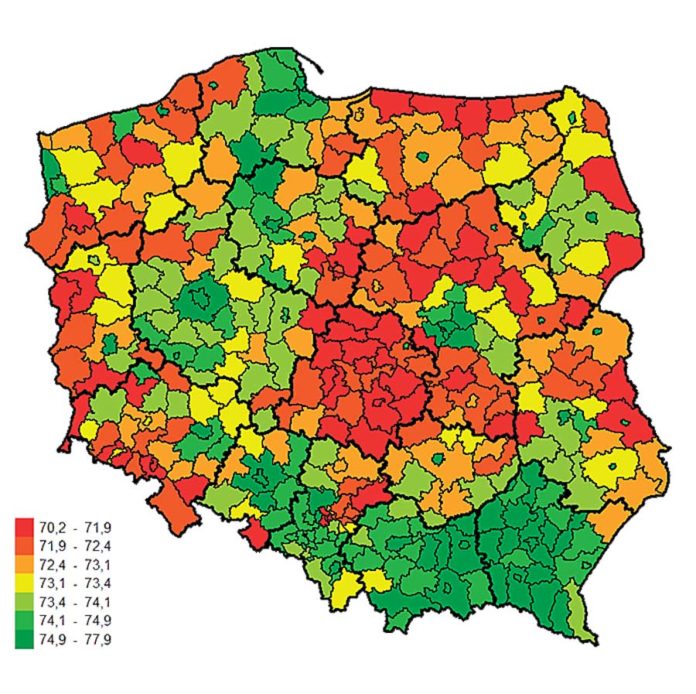 Gorszy w tym zestawieniu jest tylko Piotrków Trybunalski z wynikiem – 70,2 lat. Oznacza to, że mężczyźni z powiatu chełmskiego żyją 7 lat krócej w porównaniu z tymi z Rzeszowa, którzy statystycznie żyją najdłużej w kraju – 77,9 lat. W raporcie czytamy też, że powiat chełmski jest jednym z kilkunastu w Polsce, w którym kumulują się dwa niekorzystne zjawiska, czyli zagrożenia tzw. deprywacją oraz „wysokim poziomem umieralności z ogółu przyczyn”.