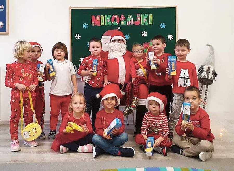 Gdy w końcu zawitał z workiem pełnym prezentów, powitały go piosenkami i uśmiechem. Radości z podarków było mnóstwo, a rózgi nikt nie dostał. (gkj)