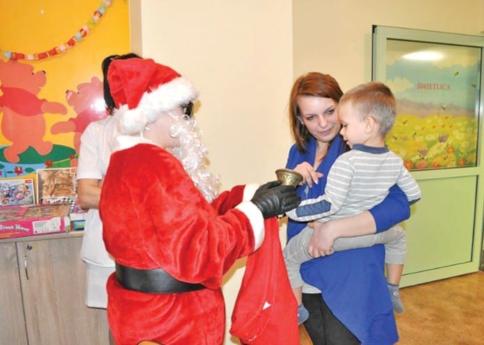 Z okazji mikołajków w żłobku zorganizowano zbiórkę prezentów dla dzieci przebywających na oddziale pediatrycznym w chełmskim szpitalu. Mikołaj po słodkiej uczcie z dziećmi ze żłobka udał się prosto do szpitala przekazać prezenty. Dyrektor żłobka Katarzyna Sadowska-Twardzik składa serdeczne podziękowania wszystkim darczyńcom za przekazane dla chorych dzieci rzeczy. (s)