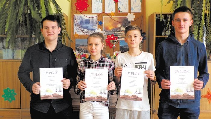 To Jakub Wilgos i Michał Cor z III klasy gimnazjum oraz Szymon Sarzyński i Julia Krasnowska z VII klasy szkoły podstawowej.