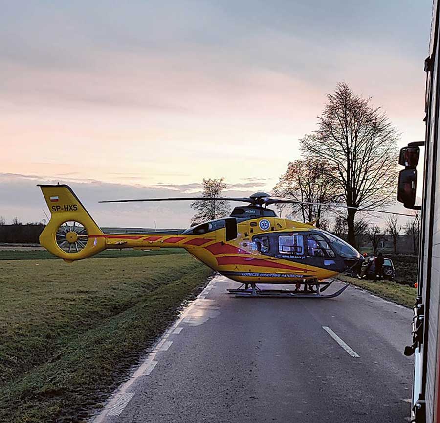 Samochód z nastolatkami w środku zjechał z drogi i uderzył w drzewo. Do szpitala trafiły cztery osoby. Po najciężej ranną przyleciał śmigłowiec Lotniczego Pogotowia Ratunkowego.