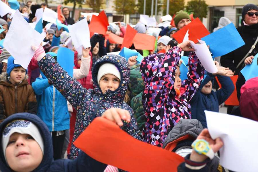 Z okazji 65. urodzin miasta świdnickie przedszkolaki zebrały się na placu Konstytucji 3 maja, gdzie utworzyły „żywy” herb Świdnika