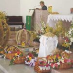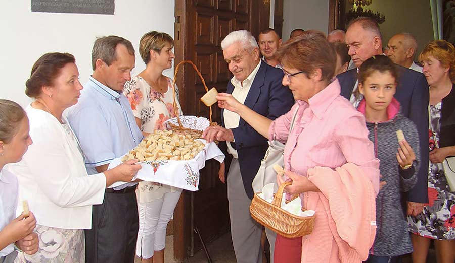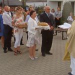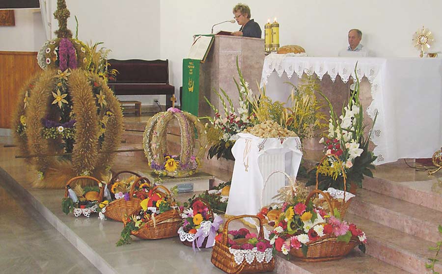 Po homilii ksiądz poświęcił płody rolne, zboże zioła i kwiaty złożone przed ołtarzem. Starości dożynek – Małgorzata Szwed i Jan Polak – przed drzwiami kościoła częstowali wychodzących wiernych chlebem. Przygotowaniem uroczystości dożynek zajęli się mieszkańcy wsi: Mszanna, Kolonia Mszanna i Józefów. (gkj)