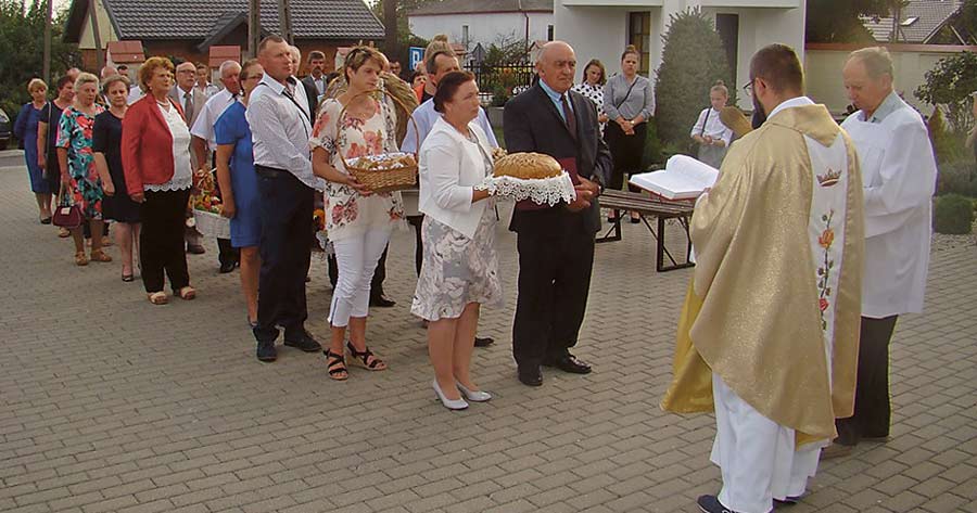 Ks. Michał Pniewski przywitał delegacie rolników z wiosek i pobłogosławił tegoroczne plony. Podczas homilii podkreślił wagę kultywowania tradycji oraz zwrócił uwagę na znaczenie trudu rolników oraz przywiązania do ziemi. Zaznaczył również jak ważny jest szacunek do chleba jako źródła pokarmu powszedniego, ale też i duchowego.