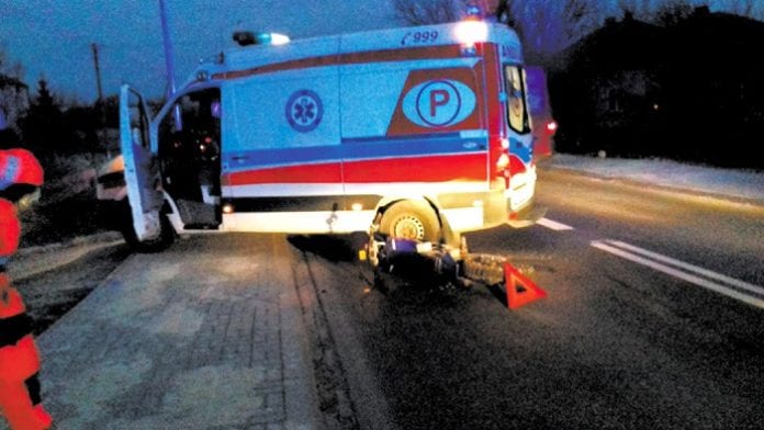 Do kolizji doszło w czwartek o godz. 16.00. Przez miejscowość Zastawie w gminie Kraśniczyn przejeżdżała karetka pogotowia ratunkowego. – W pewnej chwili wbił się w nią jadący z naprzeciwka motocyklista – mówi Piotr Wasilewski, rzecznik krasnostawskiej policji. Ratownicy medyczni od razu udzielili pomocy mężczyźnie, na miejscu pojawiła się też druga karetka i między innymi przez to medycy nie mogli dojechać do mieszkanki gminy Krasnystaw, która miała problemy z sercem (piszemy o tym w tekście „Policjanci uratowali życie 62-latki”). – Motocykliście, 32-letniemu mieszkańcowi gminy Kraśniczyn, nic poważanego się nie stało, okazało się za to, że jest pijany. Miał prawie 2 promile alkoholu – informuje Wasilewski. (kg)