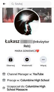 Przerzucany z miasta do miasta, od jednej szkoły do drugiej, zaczął coraz bardziej zatracać się w świecie wirtualnym i swojej chorej fascynacji śmiercią i przemocą. Obsesyjnie podziwiał młodocianych morderców, sprawców masakry w liceum w Columbine, do której doszło 20.04.1999 r. Nawiązał „w sieci” kontakt z takimi jak on, niezrozumiani przez społeczeństwo wzajemnie podsycali swoją nienawiść do świata. We wpisie „Pora zabijać” oznaczył nawet swoją przyjaciółkę, również zafascynowaną masakrą z 99 r. Koledzy z klasy Łukasza mówią, że podobno była to jego wirtualna dziewczyna, „tak samo mroczna jak on”. Próbowaliśmy się z nią skontaktować, ale dziewczyna milczy.