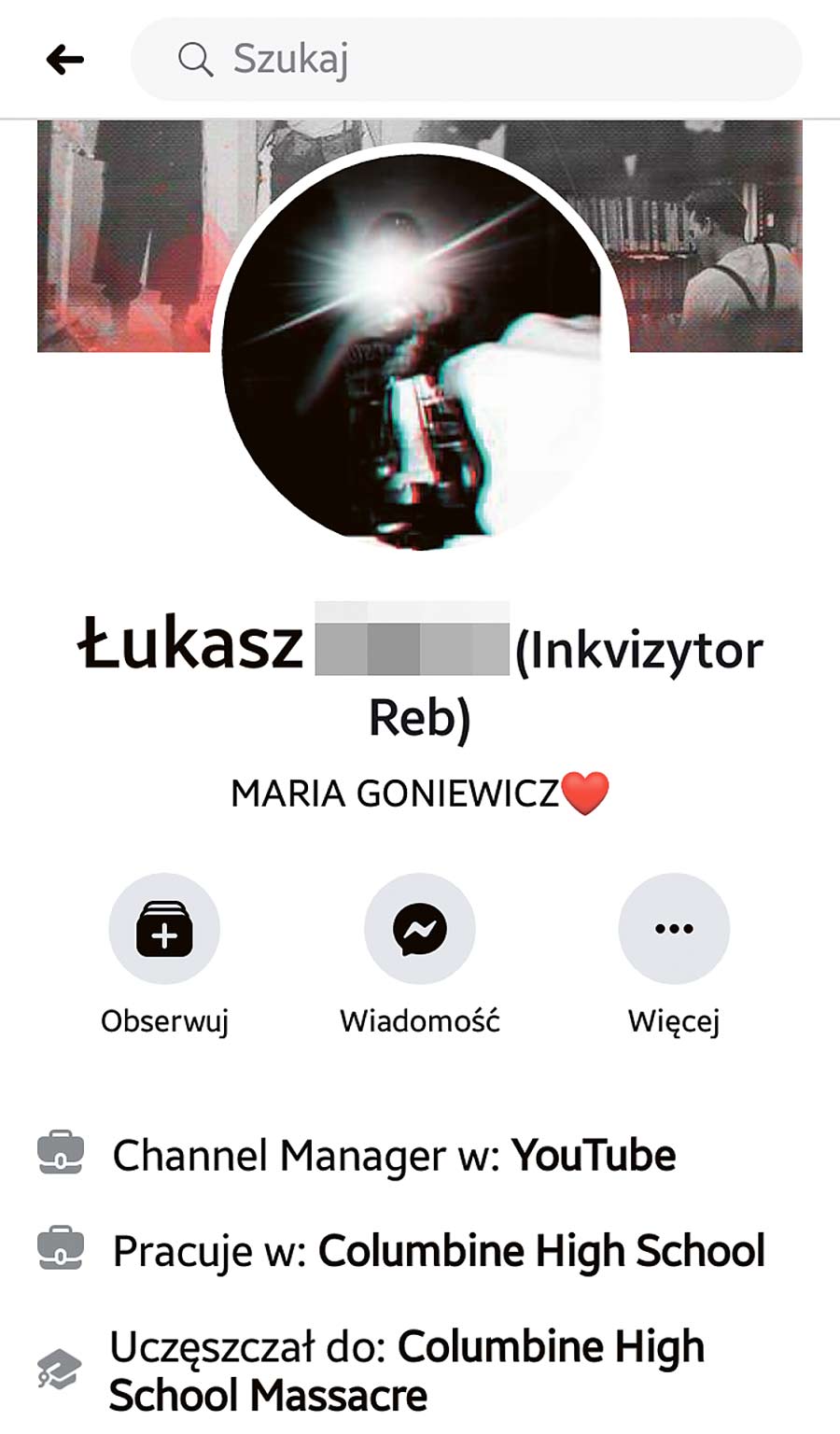 – Co mogliśmy zrobić? Ojciec Łukasza miał świadomość, że syn posiada taki profil w mediach społecznościowych – bywał na tej stronie i wiedział, o czym on tam pisze. Zapowiedział, że będzie kontrolował, co Łukasz robi w Internecie, lub zamknie tę stronę – dodaje dyrektor Anchimowicz. – Dla nas to również tragedia. W poniedziałek, od rana, z uczniami pracowali psycholodzy i pedagodzy z poradni.