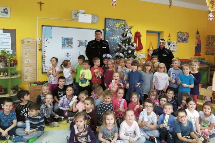 Krasnostawscy policjanci odwiedzili uczniów w Krupem i przedszkolaków w Krasnymstawie. Mundurowi zachęcali maluchów do noszenia odblasków mogących uratować życie.
