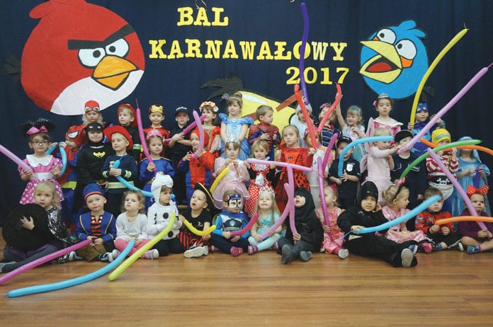Zaraz po śniadaniu dzieci założyły swoje stroje balowe i zamieniły się w królewny, księżniczki, wróżki, biedronki, rycerzy, policjantów. Wystrój sal wprowadził w radosny nastrój. Balony, serpentyny, lasery i bajkowe postacie zachęcały do zabawy. Przebierańcy świetnie się bawili, uczestnicząc we wspólnych zabawach i konkursach, a skoczna i rytmiczna muzyka zachęcała do tańca. Przedszkolaki poprzez zabawę rozwijały umiejętności współżycia i współdziałania w grupie, śmiałość w kontaktach z rówieśnikami. (a)