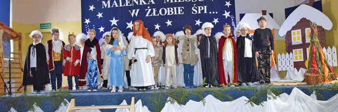 Jasełka w wykonaniu uczniów najmłodszych klas pod kierunkiem nauczycielek Agaty Skibińskiej i Barbary Demczuk-Popielnickiej nagrodzono gromkimi brawami. Spotkanie uświetnił koncert kolęd przygotowany przez uczniów klas II-VI oraz nauczycielkę Renatę Górkę. Występy zaprezentowano na nowej scenie, ufundowanej przez Ewę i Artura Stafińskich oraz wszystkich rodziców uczniów podstawówki. W spotkaniu uczestniczyli m.in. Roman Kandziora – wójt gminy Kamień; Zbigniew Czerwonka – przewodniczący Rady Gminy Kamień; Kazimierz Próchniak – proboszcz parafii św. Michała Archanioła w Kamieniu oraz Marek Neckier – dyrektor SP w Kamieniu, który jako gospodarz złożył wszystkim obecnym życzenia. (mo)