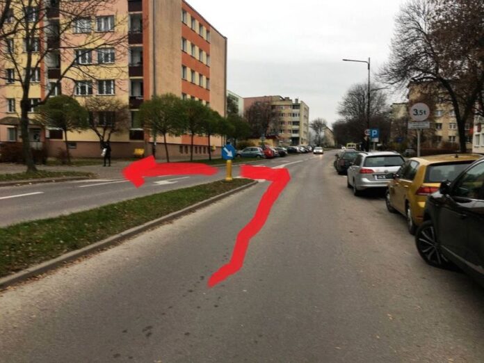 -„Apel do włodarzy miasta zajmujących się bezpieczeństwem na drogach. Na zdjęciach przedstawiam, jak mieszkańcy korzystający z parkingów za budynkiem Niepodległości 29 skracają sobie drogę dojazdową, wjeżdżając od strony skrzyżowania ulic Kosynierów i Niepodległości. Częsty widok, więc albo retusz znaków poziomych, albo łapanie kierowców łamiących przepisy” – napisał ktoś z mieszkańców.