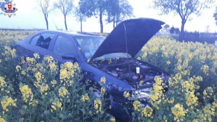 39-latka z gminy Piaski kierująca skodą wjechała najpierw w ogrodzenie posesji, a potem wylądowała na polu rzepaku. Kobieta jechała sama, nie odniosła żadnych obrażeń. Policjanci sprawdzili jej stan trzeźwości i okazało się, że miała blisko 0,5 promila alkoholu w organizmie.