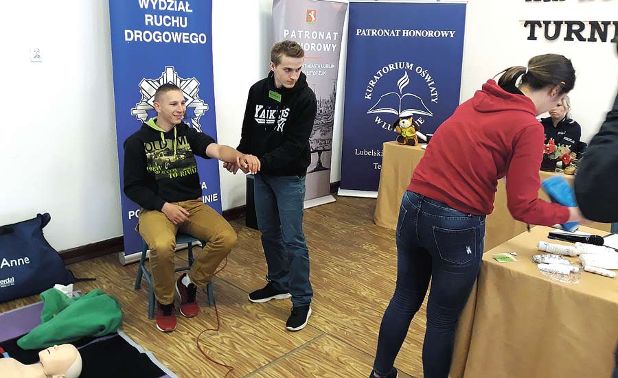 Celem turnieju było utrwalenie i popularyzacja zasad uczestnictwa w ruchu drogowym poprzez kształtowanie postaw i nawyków, zapewniających bezpieczeństwo i wygodę wszystkich uczestników ruchu drogowego, popularyzowanie podstawowych zasad i umiejętności udzielania pierwszej pomocy przedmedycznej, utrwalenie wiadomości niezbędnych do rozumienia zasad świadomego uczestnictwa w ruchu drogowym, kształtowanie umiejętności obserwacji i oceny sytuacji na drodze oraz podejmowania właściwych decyzji. Młodzież do konkursu przygotował Karol Kawiak. (a)