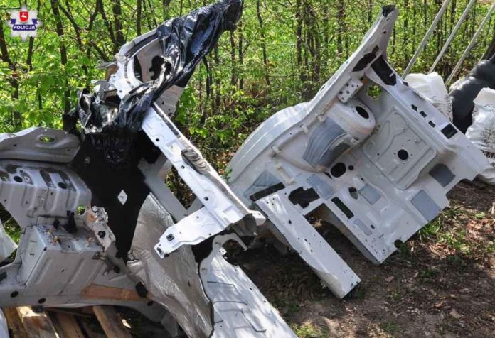 Na dwóch posesjach w Lublinie i w gminie Głusk składowano elementy ze skradzionych samochodów. Policjanci dowiedzieli się o magazynach części i zorganizowali obławę.
