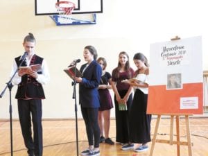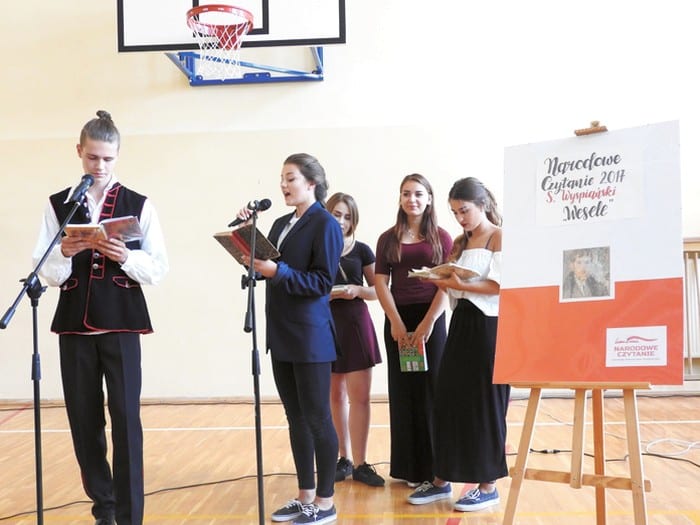 W tym roku nauczyciele i młodzież czytała fragmenty „Wesela” Stanisława Wyspiańskiego. Uroczystość rozpoczęła dyrektor I LO Edyta Fidecka, zapoznając zebranych z obszernym fragmentem opisującym wnętrze słynnej bronowickiej chaty. Przedstawiciele każdej z klas entuzjastycznie podeszli do zadania. Wyćwiczyli dykcję i zadbali o regionalne stroje. Na szczególne wyróżnienie zasłużyły reprezentantki klasy I b: Aleksandra Lisiecka, Natalia Kulczyńska vel Nowosad oraz Kinga Malec. Dziewczęta doskonale oddały ducha prezentowanych scen dramatu. Koordynatorami wydarzenia były: Anna Kosmowska, Tamara Koterwas, Anna Kowalska i Dorota Matysiak. (k)