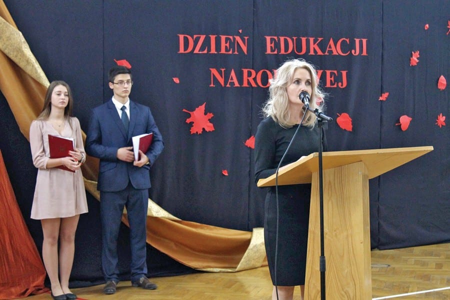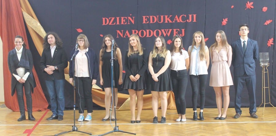 W Dniu Edukacji Narodowej w II LO wzięli udział m.in.: Marek Majewski – naczelnik wydziału oświaty starostwa powiatowego w Krasnymstawie, Edward Kawęcki -przewodniczący rady miasta Krasnystaw, ks. Józef Jagiełło oraz przewodnicząca rady rodziców Urszula Chwiejczak. W swoim wystąpieniu dyrektor II LO Anna Antyga wspominała wyjątkowych pedagogów, nauczycieli, emerytów, a także zasługi dotychczasowych dyrektorów liceum. Kolejnym punktem uroczystości było wręczenie nagród dyrektora II LO. Trafiły one do: Renaty Czerniak, Elżbiety Kargul, Doroty Mąki i Piotra Zielińskiego. Nagrodę otrzymał również pracownik obsługi Henryk Huba. Srebrny Medal za Długotrwałą Służbę otrzymał Marek Nowosadzki. W części artystycznej udział wzięli: Róża Surma, Katarzyna Wójcik, Oliwia Dolak, Edyta Pastuszak, Kacper Fidecki, Paweł Piątkowski. Galę prowadzili: Adrianna Niedziela i Wojciech Maj. Za scenariusz, scenografię oraz przygotowanie młodzieży do uroczystości odpowiedzialna była Monika Filewicz. (kg)