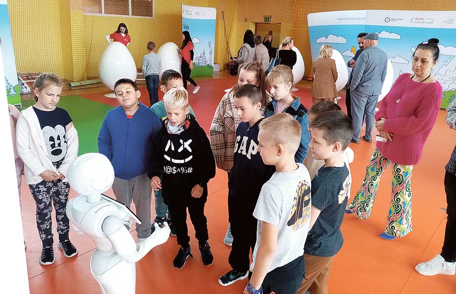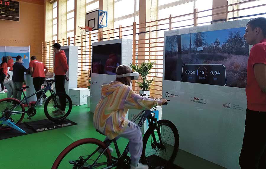 Turystyczna szkoła stacjonowała na sali gimnastycznej „Szóstki” przez dwa dni (19 i 20 września). W tym czasie dzieci i młodzież z różnych klas, ale też zaproszeni uczniowie innych szkół mogli skorzystać z symulatora nart, wsiąść do kajaka czy pojeździć na trenażerach rowerowych podłączonych do gogli VR i dzięki wirtualnej rzeczywistości poznać walory regionu. Na zwiedzających czekały interaktywne strefy z wykorzystaniem gogli, były gry i zabawy na nowoczesnym sprzęcie multimedialnym. Największą atrakcją był jednak robot humanoidalny, który wchodził w interakcję z dziećmi, a nawet tańczył. (pc)
