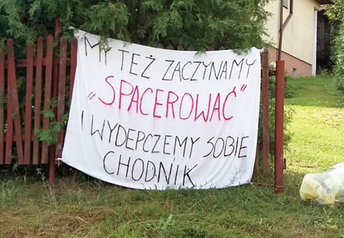 Za nią szybko opowiedzieli się inni mieszkańcy wsi. Zdecydowali, że protest zaczną od wywieszenia biało-czerwonych flag i transparentów z hasłami typu: „Żądamy bezpieczeństwa dla naszych dzieci!”, „Jaka droga każdy widzi, Zażółkiew się jej wstydzi”, „Chcemy żyć bez potopu, błota, kurzu, huku!” czy „Droga przez wieś – Średniowiecze”. I zagrozili, że jak nikt nie usiądzie z nimi do rozmów, to przejdą do ostrzejszych form protestu i zablokują ulicę. To wszystko działo się zaledwie kilka tygodni przed tragedią, w której zginął 54-latek. Ponoć na jego domu także wywieszony był transparent.