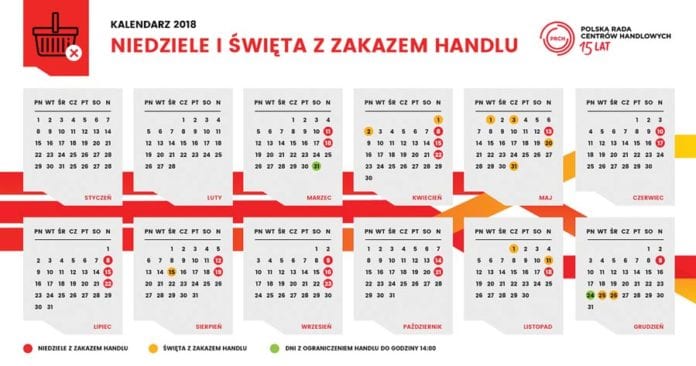 W 2018 roku niedziel z zakazem handlu będzie łącznie 20. W takich miesiącach, jak lipiec i wrzesień, nie zrobimy zakupów w aż trzy niedziele w miesiącu, a w kwietniu – nawet w cztery, ze względu na przypadające w niedzielę święto. Najbliższe miesiące zapowiadają się na trudny i pełen wyzwań okres dla branży, kiedy testowane będą przez jej przedstawicieli różne rozwiązania, a także sprawdzana ich efektywność i skutki zakazu. Przedstawiciele Polskiej Rady Centrów Handlowych informują, że nową ustawę cechuje tak wysoki stopień niedookreśloności i wewnętrznych sprzeczności o charakterze legislacyjnym i merytorycznym, że zarówno wdrożenie zaproponowanych w niej rozwiązań, jak i ich praktyczne wyegzekwowanie może wiązać się z szeregiem problemów, które już są obserwowane. Zarządcy centrów handlowych podejmują decyzje, uzależniając je od warunków, w których działa konkretny obiekt. Niektóre centra handlowe pozostają otwarte, by zapewnić klientom dostęp do usług, niektóre wydłużają godziny handlu w pozostałe dni.