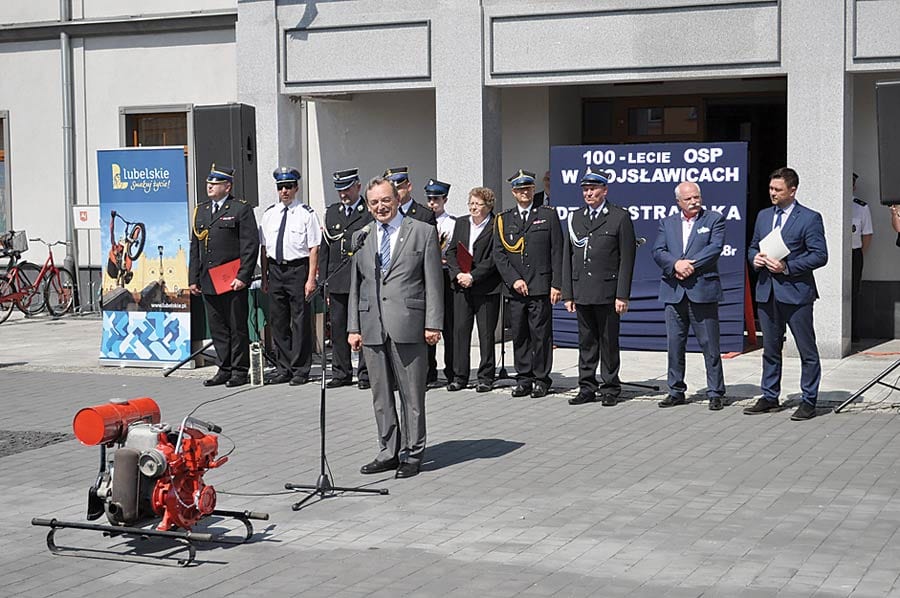 – Dzisiejsze święto, jest doskonałą okazją do tego, aby oprócz przedstawienia historii naszej „jubilatki”, oddać szacunek wszystkim druhom z terenu gminy za udział w akcjach ratowania ludzkiego życia i mienia, za niesienie pomocy potrzebującym i za aktywny udział w życiu społecznym – mówił podczas uroczystości wójt Henryk Gołębiowski i przypomniał, że w ciągu ostatnich trzech lat druhowie z OSP w Wojsławicach brali udział w ponad 120 akcjach ratowniczych.