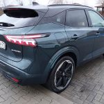 Dwukolorowe nadwozie osadzone na 20-calowych kołach, zaokrąglona linia dachu zwieńczona pokaźnym spojlerem i „przymrużone” reflektory w kształcie położonych na boku liter „V” przyciągają wzrok. Wrażenie robi również wpisany w wielką literę „V” grill oraz wystające wyraźnie poza obręb karoserii tylne lampy. Jak na SUV-a przystało, cała dolna część nadwozia jest okolona w Nissanie czarnymi plastikowymi listwami. W nowym Qashqaiu ciekawostką jest również tylne zawieszenie oparte na wielowahaczu. Występuje ono tylko w najmocniejszej wersji i odpowiada za lepszą trakcję. Wnętrze jest bardzo przemyślane, proste w obsłudze i w odbiorze wizualnym i bardzo przyzwoicie wykonane. Mamy tu morze alcantary i miękkie plastiki, więc wnętrze jest luksusowe.