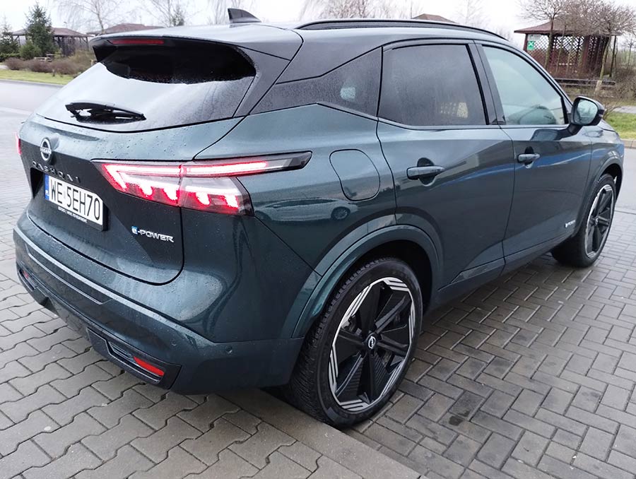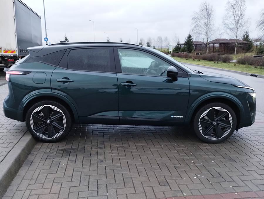 Qashqai z napędem e-power jest najfajniejszą odmianą tego modelu. Jak to działa? Najprościej rzecz ujmując, jest to połączenie silnika benzynowego, który ładuje baterię oraz silnika elektrycznego, który napędza koła. Napęd ten działa podobnie jak w lokomotywach. Jego głównym zadaniem jest zmniejszenie emisji spalin i kosztów eksploatacji. Samochodu nie trzeba podłączać do sieci ładowania, dlatego kierowcy nie muszą zmieniać swoich przyzwyczajeń. Oprócz silnika spalinowego, technologia e-power wykorzystuje również hamowanie rekuperacyjne, które wspierają ładowanie baterii. Pod maską mamy zamontowany benzynowy silnik o pojemności 1,5 l i mocy 158 KM oraz silnik elektryczny generujący 190 KM.