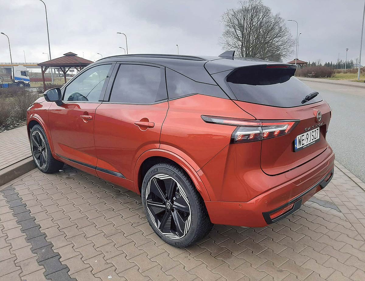 Qashqai po liftingu zachował swój komfortowy charakter. Zawieszenie zostało zestrojone tak, aby skutecznie tłumić nierówności, a jednocześnie zapewniać stabilność przy wyższych prędkościach. W mieście auto sprawnie pokonuje progi zwalniające i poprzeczne uskoki, natomiast w trasie oferuje pewne prowadzenie i dobrą izolację od hałasów. Układ kierowniczy jest precyzyjny i lekki przy manewrowaniu, co docenią kierowcy poruszający się po zatłoczonych ulicach. Jednocześnie przy wyższych prędkościach zachowuje odpowiednią sztywność. Napęd e-Power dodatkowo podnosi komfort w spokojnym tempie jazdy samochód porusza się niemal bezgłośnie, a silnik spalinowy włącza się w sposób mało odczuwalny dla pasażerów. To nie jest SUV o sportowych aspiracjach, ale jako rodzinne auto do codziennego użytku sprawdza się bardzo dobrze. Komfort podróżowania stoi na wysokim poziomie, a wyciszenie kabiny pozwala docenić długie trasy.