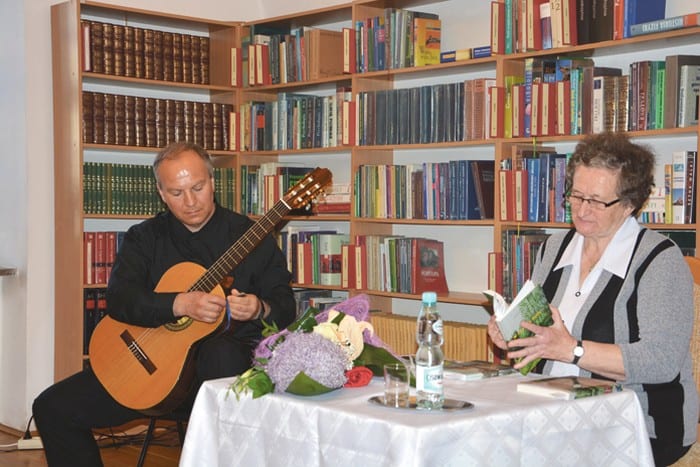 W sobotnie popołudnie, 3 czerwca, do Biblioteki przybyli liczni goście z Chełma, Rejowca, Kraśnika i oczywiście z Krasnegostawu. Tej nocy w Bibliotece połączono obraz, słowo i muzykę. Na wystawie zaprezentowano 37 obrazów olejnych i 38 akwarel niezwykłego człowieka i utalentowanego malarza – Grzegorza Gwardiaka, który urodził się w Krasnymstawie, mieszkał i pracował w Rejowcu, a zginął w wypadku samochodowym w ubiegłym roku. O jego malarstwie opowiadali przyjaciele – Sławomir Franc, Stanisław Miszczuk, Dorota Łosiewicz i Marek Kość. Podziękowania na ręce żony śp. Grzegorza – Marceliny Gwardiak złożył Mirosław Kość – przewodniczący rady miasta Rejowiec. W imieniu burmistrz Krasnegostawu Hanny Mazurkiewicz list gratulacyjny przekazał Tadeusz Kiciński, przewodniczący komisji oświaty rady miasta Krasnystaw. W czasie wieczoru goście mogli także bliżej poznać poezję Lucyny Marii Franc, emerytowanej nauczycielki, która pisze od lat, a dzięki synowi jej wiersze zostały opublikowane i zaprezentowane szerszej publiczności dwa lata temu. (k)