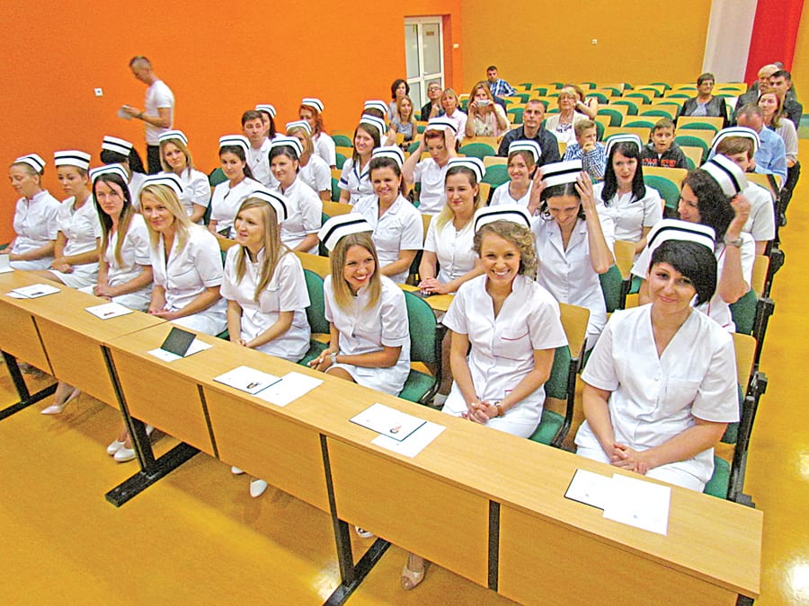 – Jesteście historycznym rocznikiem. Pierwszym, który opuszcza nasze mury z dyplomem pielęgniarstwa – mówił rektor Józef Zając do 26 absolwentek i 2 absolwentów zgromadzonych na uroczystości ukończenia studiów licencjackich. Przyszłe pielęgniarki i przyszli pielęgniarze przyrzekali zawsze nieść pomoc chorym. Nie obyło się też bez wręczenia symbolicznych czepków.