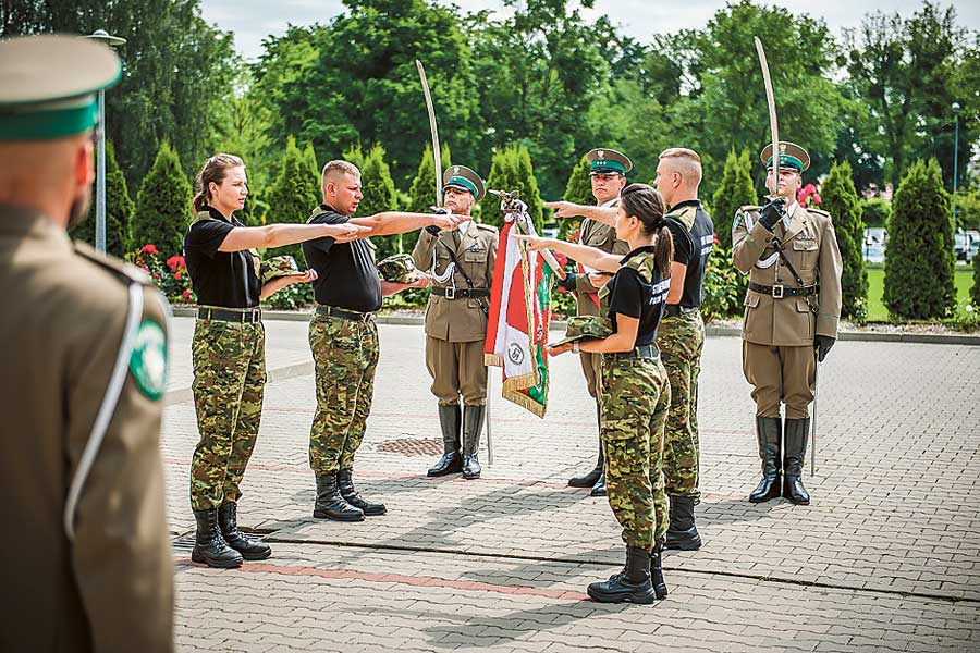 To rekordowo duża liczba osób, które wstąpiły w szeregi NOSG. Uroczystą zbiórkę zorganizowano w asyście pocztu sztandarowego oraz w obecności kadry kierowniczej NOSG. Rotę ślubowania odczytał zastępca Komendanta Nadbużańskiego Oddziału Straży Granicznej – płk SG Tomasz Zybiński, a błogosławieństwa nowym funkcjonariuszom udzielili: ks. ppłk Mariusz Antczak – proboszcz parafii św. Kazimierza w Chełmie oraz dziekan prawosławny SG ks. ppłk SG Adam Weremijewicz. (opr. mo, fot. NOSG)