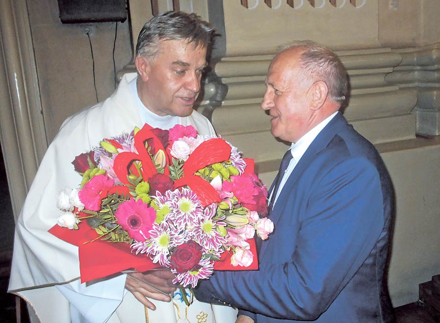Księdza kanonika Jarosława Wójcika witał też poseł Lucjan Cichosz, który złożył proboszczowi życzenia zdrowia, błogosławieństwa Bożego i Matczynej opieki na każdy dzień, a także radości z pełnionej posługi duszpasterskiej w krasnostawskiej parafii.
