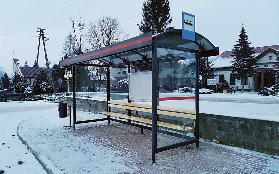 Gmina Rudnik informuje o możliwości korzystania z nowego przystanku komunikacji publicznej, jaki stanął w centrum Rudnika.