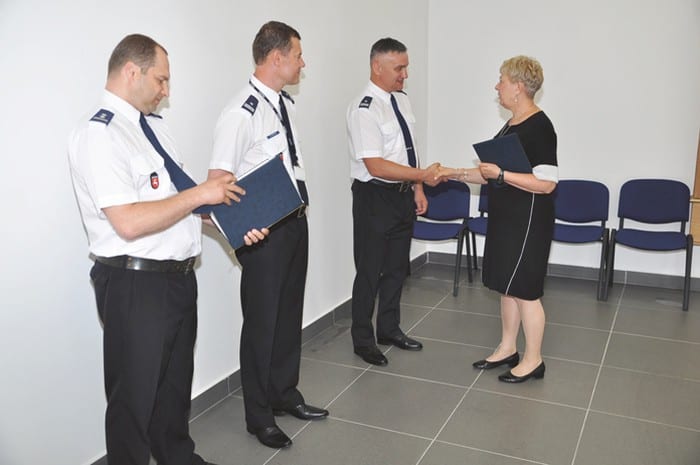 W uroczystej zbiórce wzięli udział przedstawiciele władz samorządowych na czele z burmistrz Krasnegostawu Hanną Mazurkiewicz, szefowie służb mundurowych, przedstawiciele wymiaru sprawiedliwości, instytucji współpracujących na co dzień z policją oraz funkcjonariusze i pracownicy komendy. – Mł. insp. Mariusz Woźniak rozstaje się z komendą w Krasnymstawie, w której służył od listopada 2016 r. Nie żegna się on jednak z mundurem. Został już powołany na stanowisko pierwszego zastępcy komendanta policji w Łukowie – mówi Piotr Wasilewski, rzecznik krasnostawskiej policji. Podczas uroczystej zbiórki zgromadzeni przywitali podinsp. Janusza Pudźwę – dotychczasowego zastępcę komendanta policji w Rykach. Pudźwa służbę w policji rozpoczął w 1991 r. Posiada bardzo bogate doświadczenie zawodowe, które zdobywał na stanowiskach wykonawczych i kierowniczych. Był między innymi naczelnikiem wydziału ruchu drogowego w KPP W Krasnymstawie oraz pełnił obowiązki zastępcy komendanta policji w Krasnymstawie. Ostatnio zajmował stanowisko zastępcy szefa policji ryckiej. Pudźwa zasłynął tym, że w maju 2013 r., w Lublinie uratował życie ludzi wyciągając ich z auta, które wpadło do rzeki Bystrzyca. – Nagle zobaczyłem samochód zjeżdżający z ulicy, przewracający latarnię i wpadający wprost do Bystrzycy – opowiadał nam wówczas Pudźwa. – Ludzie, którzy tamtędy przechodzili, rzucili się w stronę rzeki. Nie zastanawiając się ani chwili, wysiadłem z samochodu i pobiegłem im pomóc – relacjonował. 41-letni wówczas policjant po kilku sekundach znalazł się w wodzie. Sytuacja była dramatyczna. Srebrne punto, które wpadło do Bystrzycy, dryfowało z nurtem rzeki. Woda szybko dostawała się do auta. Gdyby nie szybka reakcja policjanta z Krasnegostawu i kilku innych mężczyzn, siedzący w środku ludzie na pewno by się potopili. (kg)