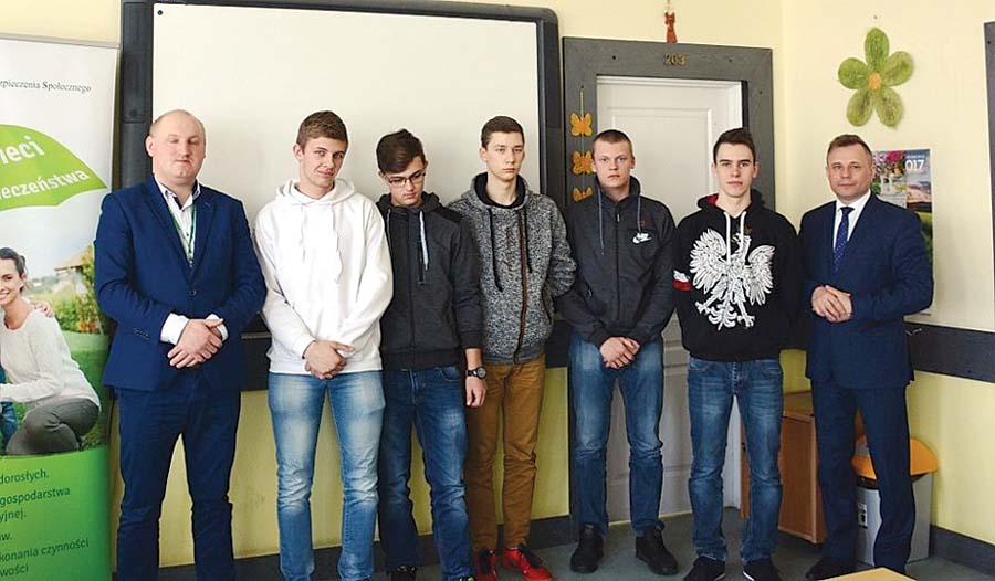 Konkurs ma na celu popularyzowanie wśród młodzieży szkolnej znajomości dobrej praktyki rolniczej ze szczególnym uwzględnieniem zagrożeń i zasad bezpiecznej pracy w gospodarstwach rolnych, kształtowanie umiejętności praktycznego zastosowania wiedzy z zakresu dobrej praktyki rolniczej oraz szerzenie idei bezpiecznej pracy wśród młodych rolników. W zmaganiach wzięło udział m.in. pięciu uczniów z klasy II BTP ZS CKR Siennica Różana: Patryk Dominik, Bartłomiej Kawka, Wojciech Młynarczyk, Dawid Tokarczyk i Jakub Żeliszczak. Uczestnicy mieli do rozwiązania test składający się z trzydziestu pytań. Zwyciężył Bartłomiej Kawka i to on będzie reprezentował ZS CKR na etapie centralnym, który odbędzie się 18 kwietnia w Szkole Głównej Gospodarstwa Wiejskiego w Warszawie. Drugie miejsce zajął Jakub Żeliszczak, a trzecie Dawid Tokarczyk. Nad prawidłowym przebiegiem konkursu czuwali: Piotr Padziński (przedstawiciel Placówki Terenowej KRUS w Krasnymstawie) oraz nauczyciel Krzysztof Rękas. Nagrody dla zwycięzców ufundowała KRUS w Krasnymstawie, a ich wręczenia dokonali – Justyna Przysiężniak kierownik KRUS w Krasnymstawie, Piotr Padziński i dyrektor ZS CKR Jacek Jagiełło. (k)