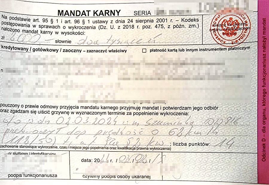 – Za przekroczenie prędkości o 62 km/h policjanci zatrzymali kierowcy prawo jazdy i ukarali wysokim mandatem oraz 14 punktami karnymi. Przypominamy, że kierujący, który przekroczy prędkość o więcej niż 50 km/h w obszarze zabudowanym, musi liczyć się z konsekwencjami utraty prawa jazdy na 3 miesiące. Jeżeli taka osoba w dalszym ciągu będzie prowadzić pojazd, to 3-miesięczny okres zostanie przedłużony do 6 miesięcy.