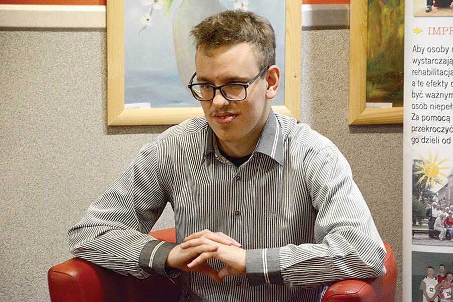 Patryk ma 20 lat, ukończył w tym roku I LO m. T. Kościuszki we Włodawie. Niestety maturę musi powtórzyć – z matematyki zabrakło mu jednego punktu. Patryk jest niepełnosprawny. Od urodzenia cierpi na dziecięce porażenie mózgowe, ma ogromne problemy z chodzeniem. Jego wzrok też jest słaby, zwłaszcza lewe oko zgasło niemal zupełnie i rogówka juz nie reaguje nawet na światło.