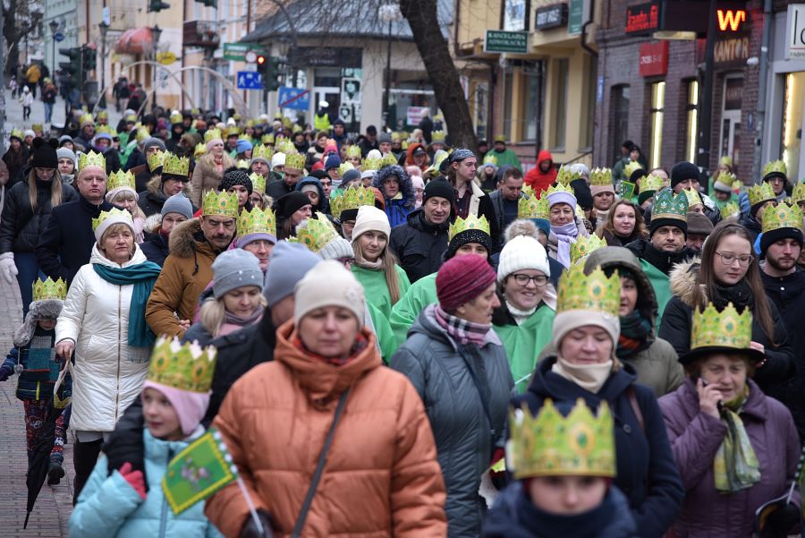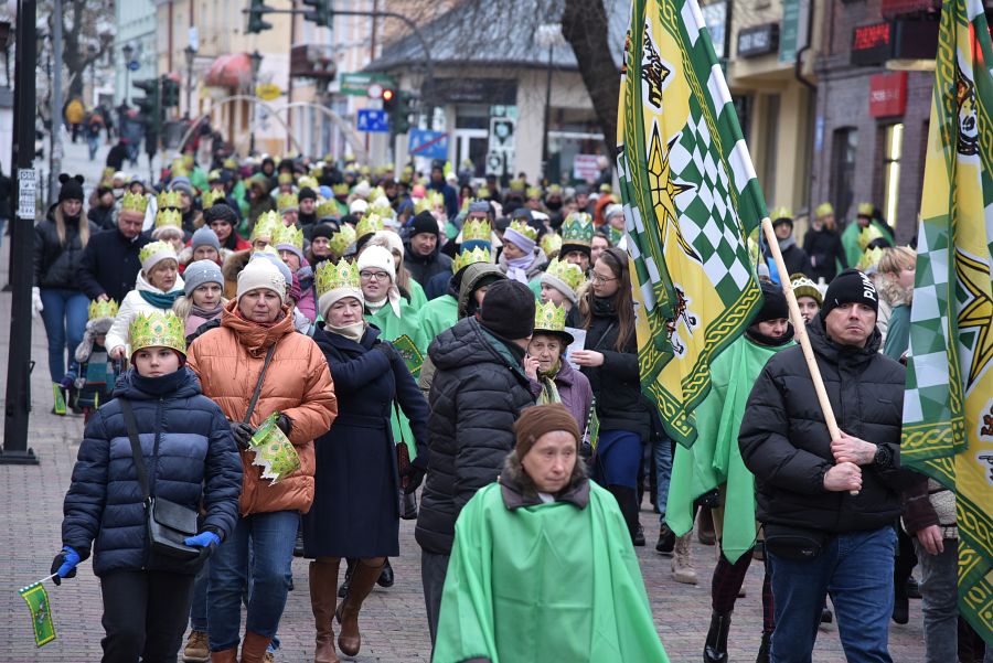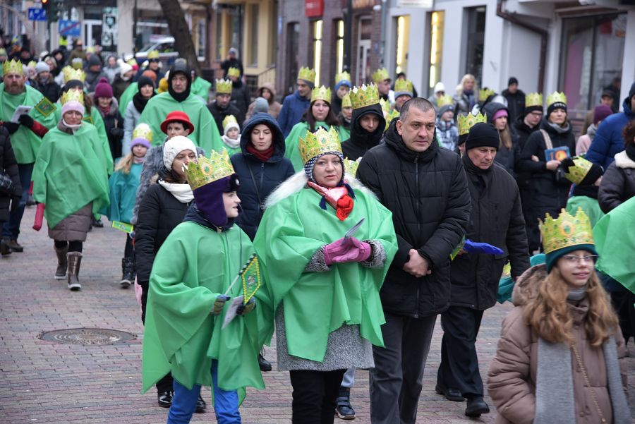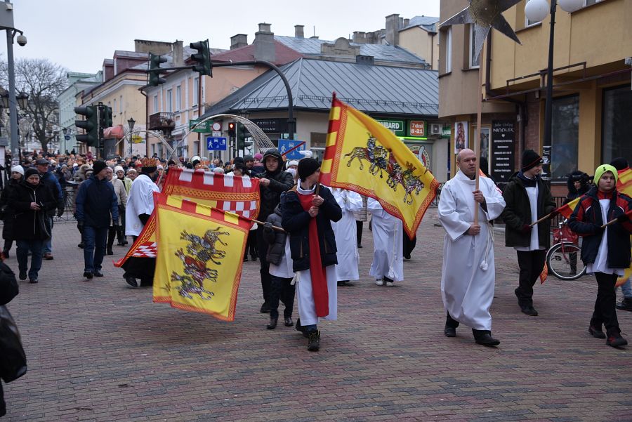 Przemarsz tłumnie zebranych mieszkańców miasta rozpoczął się po mszach świętych odprawionych w parafiach: pw. Rozesłania Świętych Apostołów, pw. Chrystusa Odkupiciela oraz pw. Narodzenia Najświętszej Maryi Panny. Orszaki zeszły się na ul. Lwowskiej i wspólnie przemaszerowały do parafii pw. Świętej Rodziny, gdzie odbyło się złożenie darów nowonarodzonemu Jezusowi. (kg)