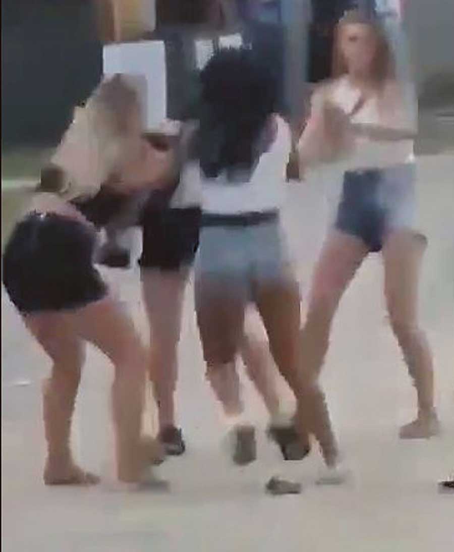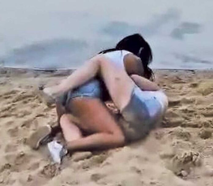 Przewraca ją tuż przy wodzie i panie w klinczu ciągną się za włosy. Rozsierdzone kobiety nie zważają na to, że są obserwowane przez mnóstwo osób. Co najbardziej przerażające, nikt nie próbuje kobiet rozdzielić czy wezwać pomocy. Przeciwnie, kilka osób nagrywa zajście telefonami, a pozostałe głośno je dopingują.