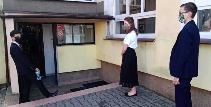 Podczas egzaminu obowiązywał taki sam reżim sanitarny, jak w czasie matur. Wszystko oczywiście przez trwającą w Polsce od ponad 3 miesięcy epidemię koronawirusa. Uczniowie musieli zachować 2-metrowy odstęp, przed wejściem na salę egzaminacyjną mieli mierzoną temperaturę, dezynfekowali ręce, a maseczki mogli zdjąć dopiero po zajęciu miejsca.