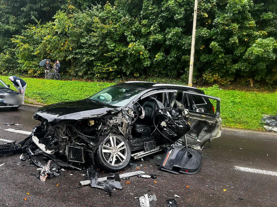 Siła uderzenia była ogromna, Audi zostało kompletnie rozbite. Najgorsze jest jednak to, że do szpitala trafiły wszystkie osoby, które znajdowały się w osobówce – dwoje dorosłych i dwoje dzieci w wieku 1 i 4 lata. Nie mieli zewnętrznie widocznych poważnych obrażeń, ale to w jakim są faktycznie stanie wykażą szczegółowe badania. Przez jakiś czas DK 17 w Izbicy była całkowicie zablokowana. Policjanci organizowali objazdy. (kg, fot. KPP w Krasnymstawie)