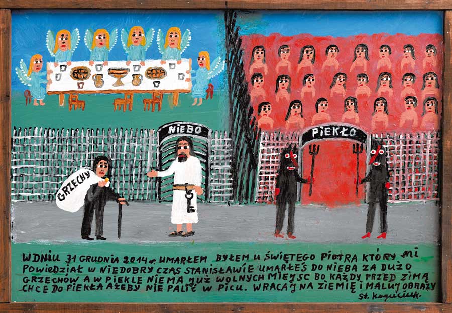 Ostatni, namalowany przez Stanisława Koguciuka „humor”, miał wymiar profetyczny. Opowiada w nim o zdarzeniu z 31 grudnia 2014 roku, kiedy został cudem odratowany. Z workiem pełnym grzechów stanął przed Świętym Piotrem strzegącym bram raju, który nakazał mu powrót na ziemię, by dalej malować obrazy. Przestrzeń obrazu podzielona została na dwie części. Obok błękitnego raju, z grupą aniołów siedzących przy suto zastawionym stole, namalował dwa diabły stojące u wrót rozgrzanego do czerwoności piekła, gdzie języki ognia oplatają grzeszne dusze.