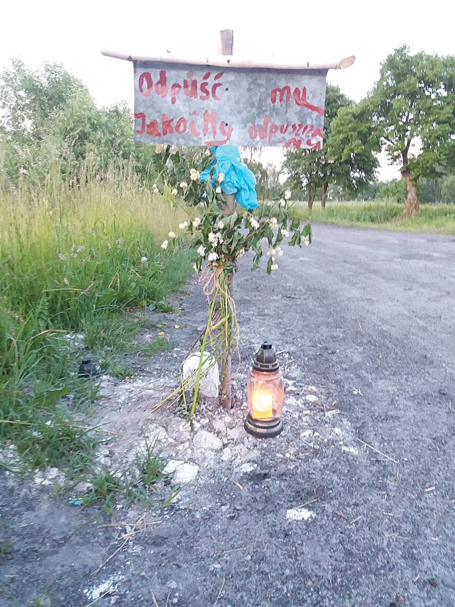 Krzyż i tabliczka z hasłem „Odpuść mu, jako i my odpuszczamy” stanęły przy drodze powiatowej w Bielinie. Paliły się przy nich znicze. Osoba, której postawiono krzyż, żyje. Ktoś zrobił jej dowcip… We wsi zawrzało.