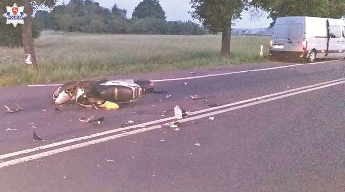 Krasnostawscy policjanci szukają dokładnych przyczyn zdarzenia, do którego doszło dziś po północy (13 czerwca) w Zakręciu. – Jak ustalili na miejscu funkcjonariusze, na prostym odcinku drogi krajowej drogi krajowej nr 17, w rejonie skrzyżowania, doszło do zderzenia busa marki Renault z motorowerem, którym kierowała 26-letnia