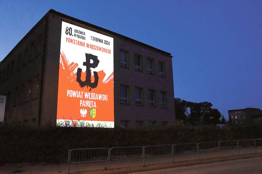 Przed kilkoma laty z okazji święta 3 Maja na budynku włodawskiego starostwa pojawił się wideomaping z treścią Konstytucji Trzeciomajowej oraz powiewającą flagą narodową. Teraz, z okazji 80. rocznicy wybuchu powstania warszawskiego starosta Marusz Zańko wpadł na pomysł uczczenia tego wydarzenia iluminacją na budynku najstarszej szkoły średniej – I LO im. Tadeusza Kościuszki.