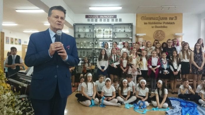 O część artystyczną wydarzeń zadbali uczniowie klasy 5 „d”, zespół wokalny „Gaduły” oraz „eSPe Five”, przygotowani pod kierunkiem Beaty Jasielskiej, Danuty Pastuszak i Jolanty Smulskiej. Koordynatorami projektu były zaś Urszula Dolecka i Jolanta Smulska. Artystyczne przedstawienia połączono z rozstrzygnięciem XVII edycji Miejskiego Konkursu Plastycznego „Moja Ojczyzna”, któremu również przyświecało motto „Gdy żyć ci przyszło w kraju nad Wisłą”. W tegorocznej edycji konkursu wzięły udział reprezntacje 11 placówek z miasta. Nagrody za najlepsze prace wręczył Tomasz Szydło, dyrektor placówki oraz burmistrz Waldemar Jakson. (w)