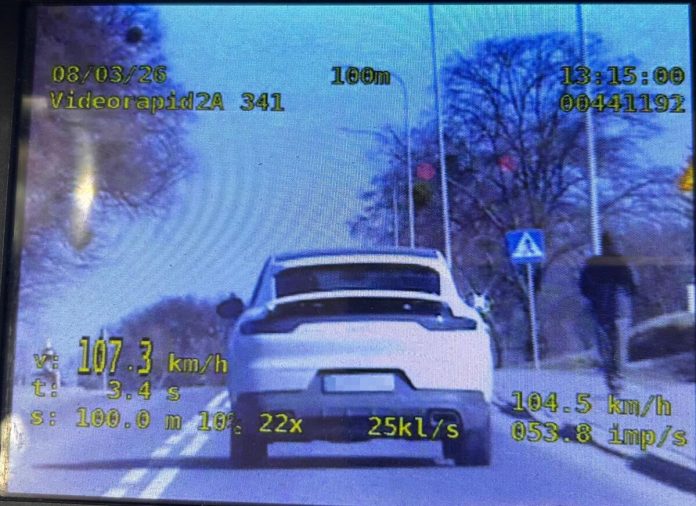 Kierujący Porsche został zatrzymany przed krasnostawską drogówkę wczoraj, 9 marca, w miejscowości Dziecinin, na krajowej „17”. Na liczniku miał 144 km/h a tym samym przekroczył dopuszczalną w tym miejscu prędkość o 54 km/h.