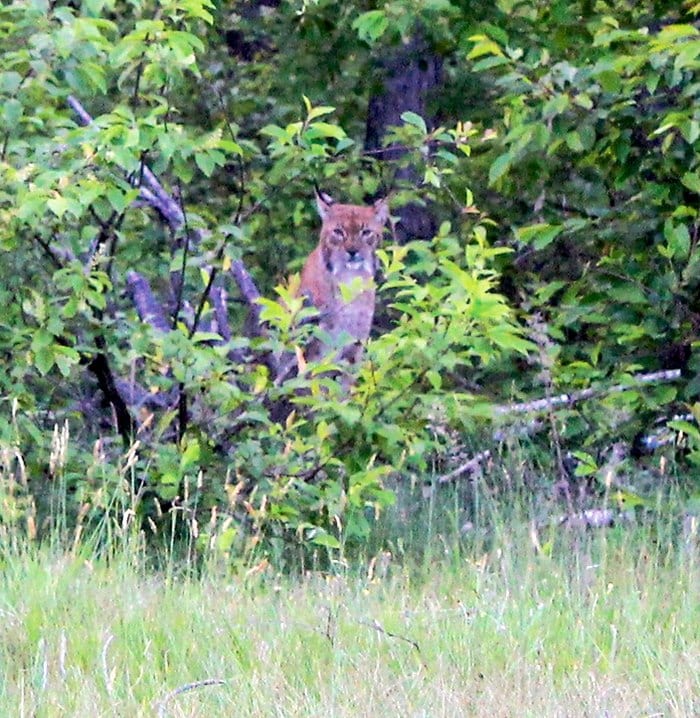 Spędzając wiele czasu w tamtejszych lasach, w końcu i ja miałem szczęście zobaczyć tego pięknego kota. Pierwszy raz przeciął mi w oddali drogę leśną. Słońce chyliło się już ku zachodowi i chłód mającej wkrótce nadejść nocy z minuty na minutę zdawał się być coraz bardziej wyczuwalny. W pierwszej chwili nie byłem pewny swej obserwacji. Podjechałem samochodem wolno w tamtym kierunku, mając nadzieję dostrzec choćby trop rysia. Gdy zatrzymałem się mniej więcej w miejscu, gdzie przechodził, już miałem wyjść z auta, kiedy kątem oka zobaczyłem wpatrującego się we mnie drapieżnika. Siedział nieruchomo około 20 m ode mnie.