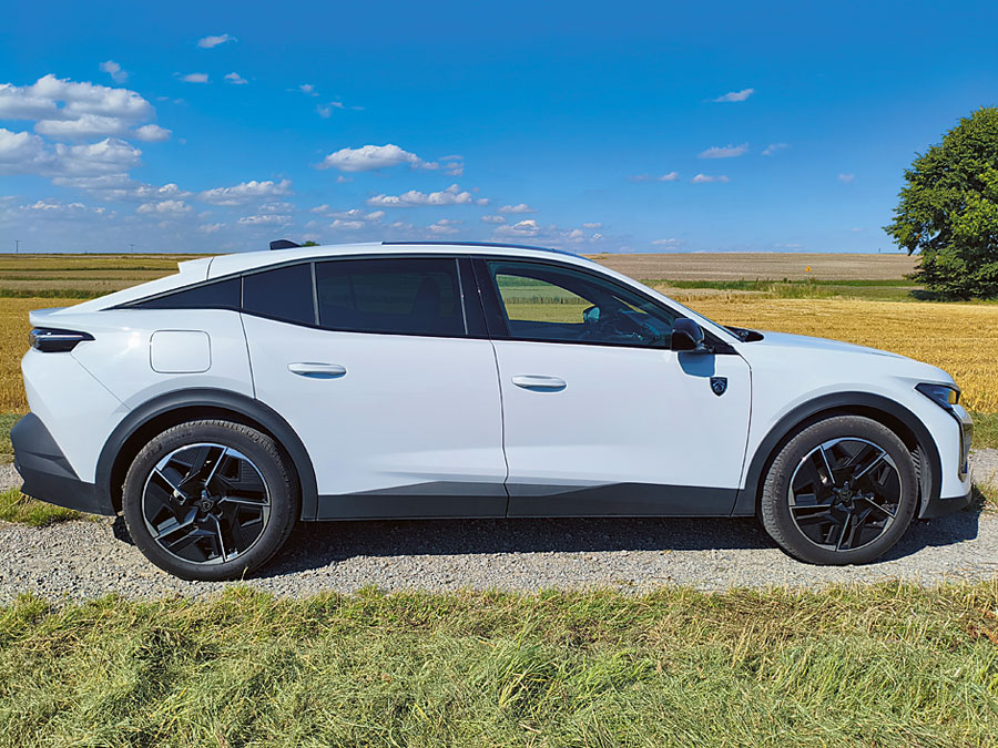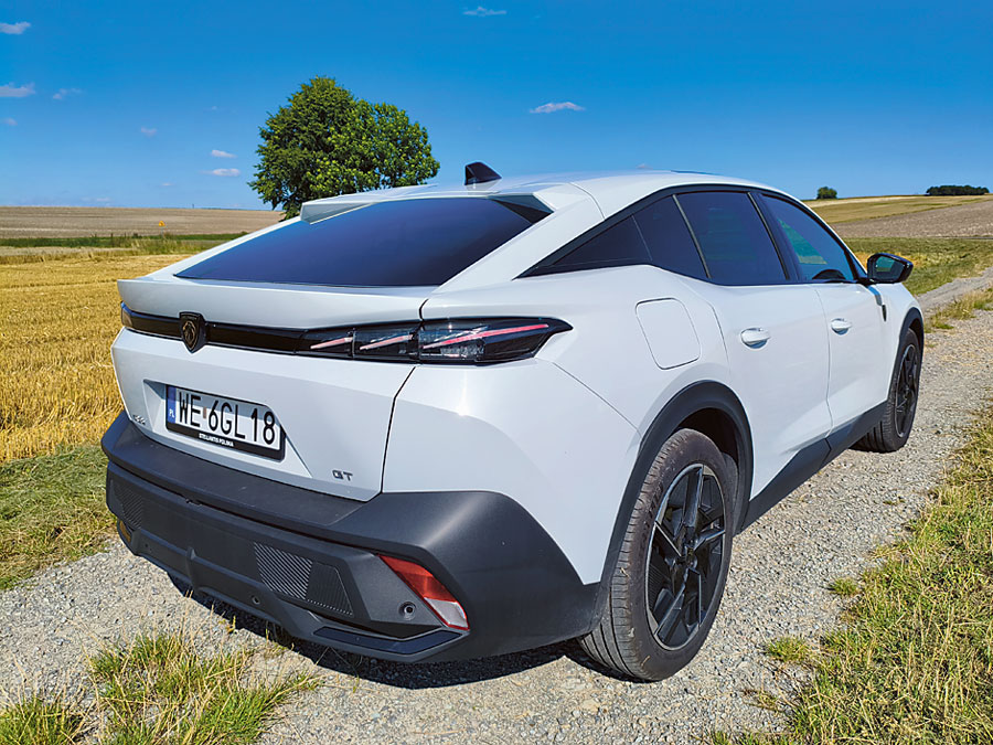 Peugeot 408 Hybrid stawia na komfort, nie sport. Zawieszenie, choć dość sztywne na dużych felgach 19”, dobrze tłumi nierówności i zapewnia stabilność przy wyższych prędkościach. W zakrętach nadwozie lekko się przechyla, ale nie przeszkadza to w utrzymaniu pewności prowadzenia. Układ kierowniczy jest precyzyjny, choć typowo dla Peugeota – bardzo „lekki” w odczuciu, co może nie przypaść do gustu kierowcom preferującym bardziej bezpośredni feedback.
