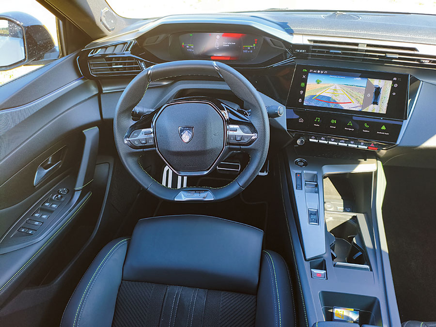 Deska rozdzielcza jest niezwykle oryginalna – futurystyczna, ale ergonomiczna. Peugeot kontynuuje koncepcję i-Cockpit, co oznacza małą, spłaszczoną kierownicę i cyfrowe zegary umieszczone ponad nią. Nie każdemu przypadnie to do gustu – osoby wyższe mogą mieć problem z widocznością wskaźników. Za to grafika i rysunek wnętrza są wyjątkowo dopracowane, z ciekawym połączeniem materiałów i ambientowym podświetleniem. Na plus: dużo miejsca na nogi z tyłu (dzięki platformie EMP2), świetna jakość spasowania, duży bagażnik (471 l). Na minus: zbyt mała tylna szyba i ograniczona widoczność przez słupki.